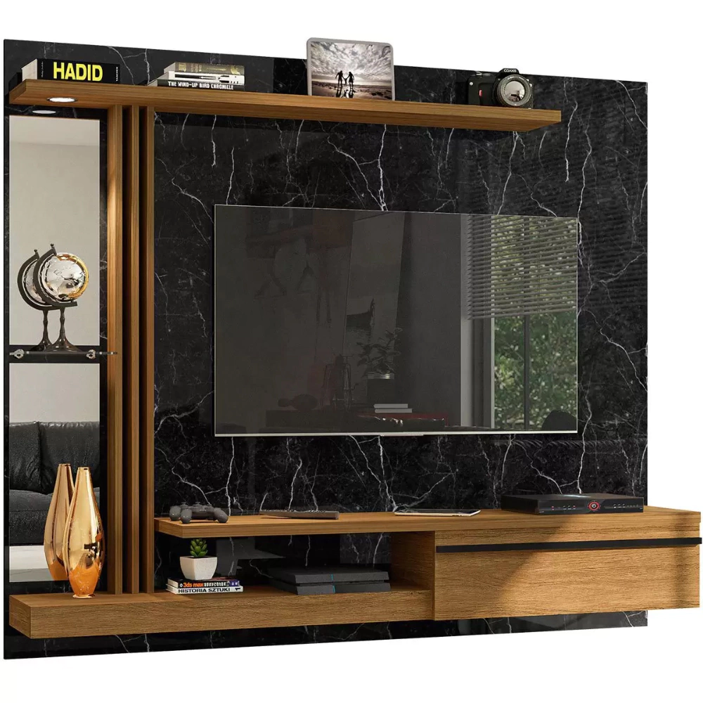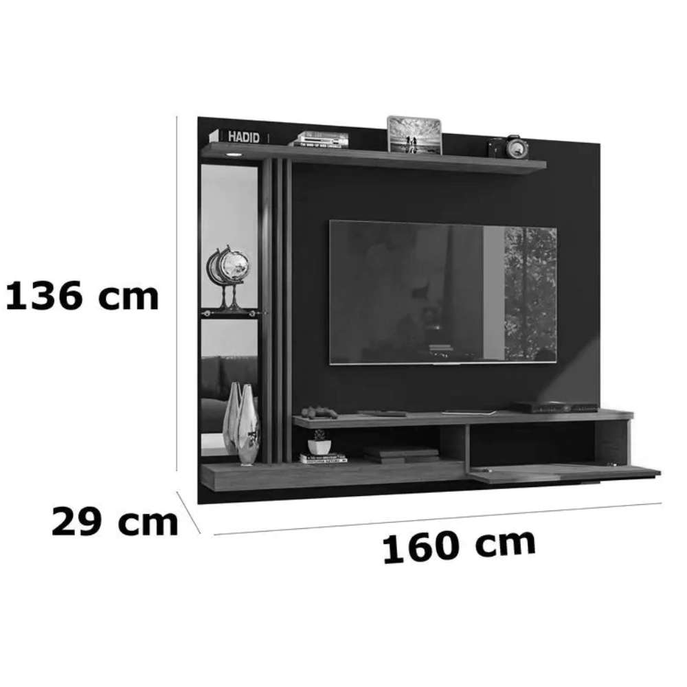 O Painel Denver é o móvel que você procura para sua sala. Com design moderno, ele combina linhas retas e ripas que proporcionam muito mais charme e requinte ao seu ambiente. Ele possui espaço para Tvs de 55 pole: adas, espelhos decorativos e prateleira de vidro de 6mm. Seu LED elétrico possui botão liga/desliga. Porta com dobradiças metálicas e puxador de MDF Revestido. Prateleira superior e tampo em 25mm o que garante ao produto maior resistência e durabilidade.