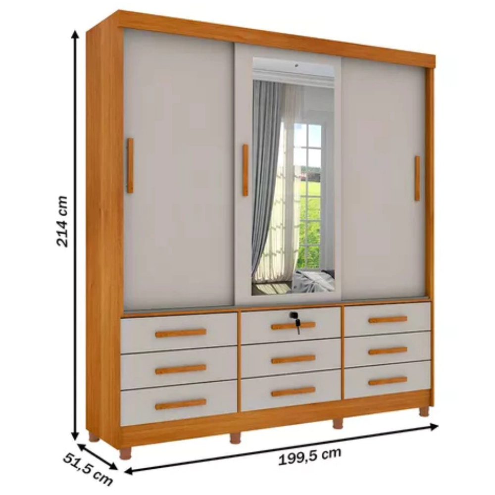 Guarda Roupa Berlim Casal com Espelho 3 Portas 9 Gavetas